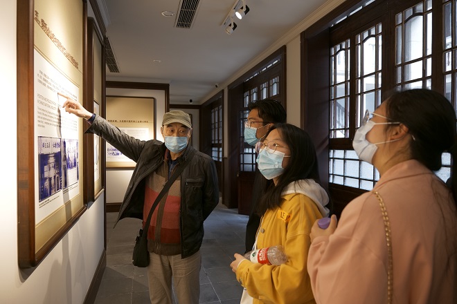 4月10日下午,江南大学原副校长郭锡均、机关退休二支部书记于民基、退休党员林璘、龙8-long8(头号玩家)国际唯一官方网站辅导员戴士焱、数媒2001班团支部全体成员共同参观荣毅仁纪念馆。在参观过程中,于民基结合党史、新中国史、改革开放史、社会主义发展史向团支部成员介绍了荣毅仁的生平事迹和历史功绩。与此同时,于民基重点向团支部成员介绍荣毅仁在担任江南大学荣誉校长时期为学校事业发展做出的贡献,勉励青年学子学习其为国为民,无私奉献的崇高精神。