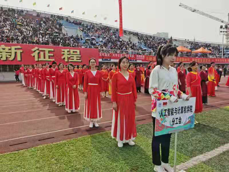 首当其冲、最受师生瞩目的就是全校各学院和部门老师的排舞表演赛,为喜迎建党100周年,这次选择的曲目是“我爱你中国”。在悠扬、激昂的乐曲声中,老师们翩翩起舞;我们龙8-long8(头号玩家)国际唯一官方网站的老师们身着颜色鲜亮的红白色纱裙,在赛场上显得格外突出;老师们整齐划一的动作、标准有力的舞姿,赢得了在场师生的阵阵掌声,无人机的镜头下记录下老师们意气风发的精神风貌。最终排舞比赛,老师们获得三等奖的好成绩。