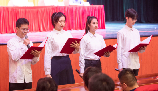 请党放心,强国有我。典礼尾声,11位新生代表用激昂有力的声音为大家带来《青春心向党》朗诵。最后,全体师生挥动手中的国旗,齐唱《歌唱祖国》,用歌声献礼党的二十大。