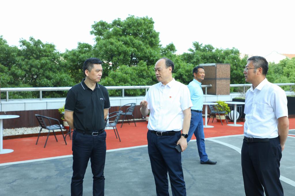 为深入开展学习贯彻习近平新时代中国特色社会主义思想主题教育,推动学院与地方的产教融合,推进科技服务人才对接,学院党委书记张华率队,副院长谢振平、钱鹏江、宋威,党委委员、计算机系主任蒋敏,专职组织员缪可嘉,办公室主任梁明霞,及商学院代表一行赴宜兴调研学习,江南大学宜兴研究生院管理办公室主任、校办副主任杨延陪同参观调研。