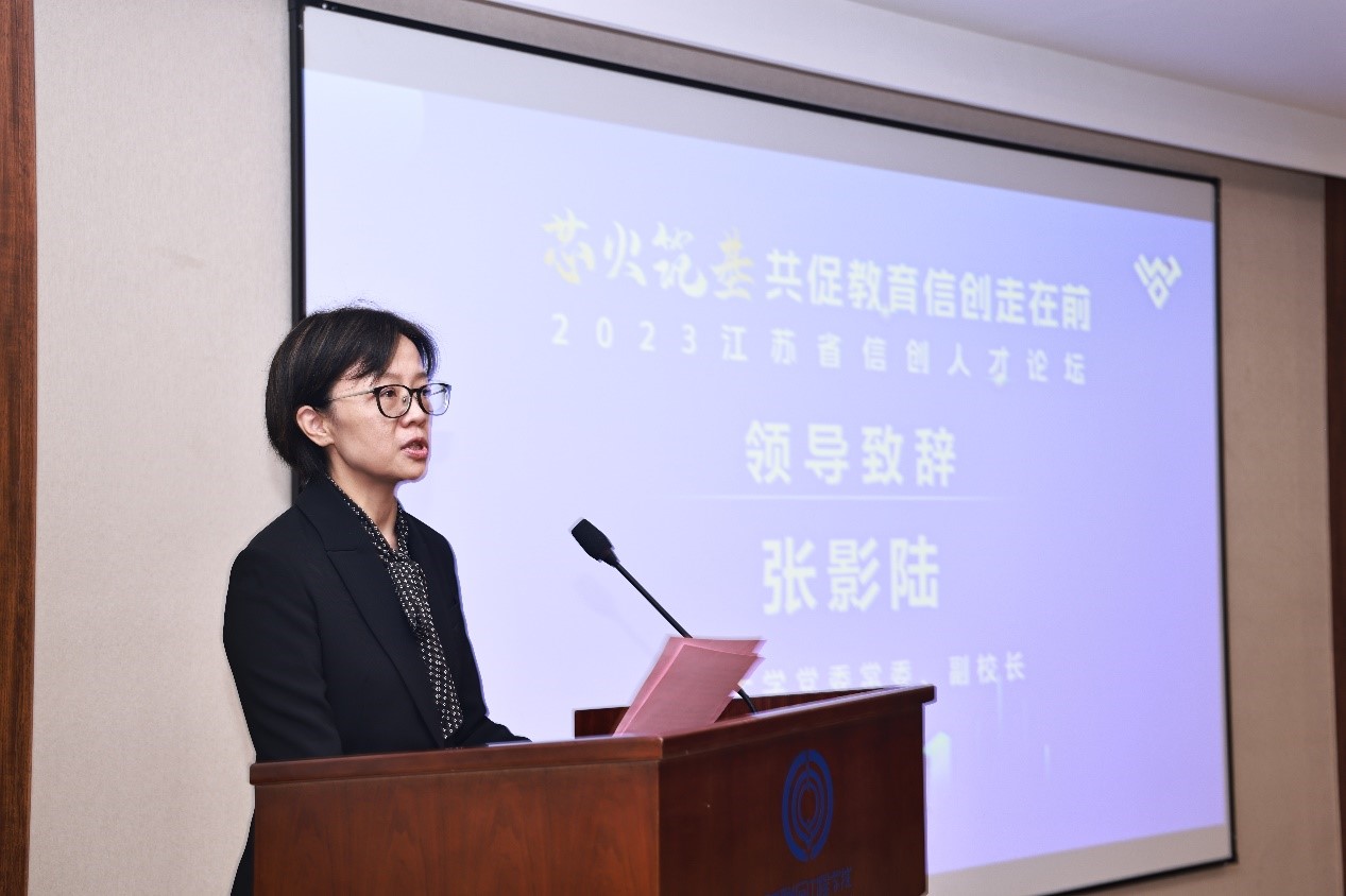 江南大学党委常委、副校长张影陆致欢迎辞。张影陆副校长表示,信创产业发展需要具备自主研发复杂软件系统能力的创新人才,作为人才培育的主阵地,学校需承担创新人才培养重任,将信创课题纳入教学。面对人才发展现状,张影陆认为应基于产教融合构建信创人才培养体系,提升系统培育能力。