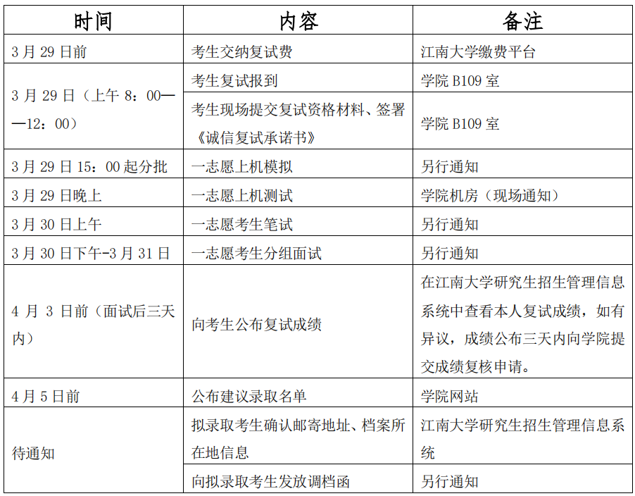 缴费说明:进入复试考生在学院规定的时间内登录“江南大学缴费平台”交纳复试费用,复试收费标准:80元/生。考生搜索微信公众号“江南大学财务处”,在“业务办理”中选择“学生缴费”,或登录“江南大学网上缴费平台”(网址:http://pay.jiangnan.edu.cn/payment/);登录账号为身份证号,登录密码为准考证号后六位(友情提醒:考生账号已开通,切勿自行注册)。按照提示交费,并打印或截图保存付费凭证。