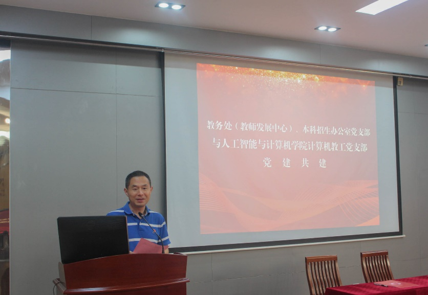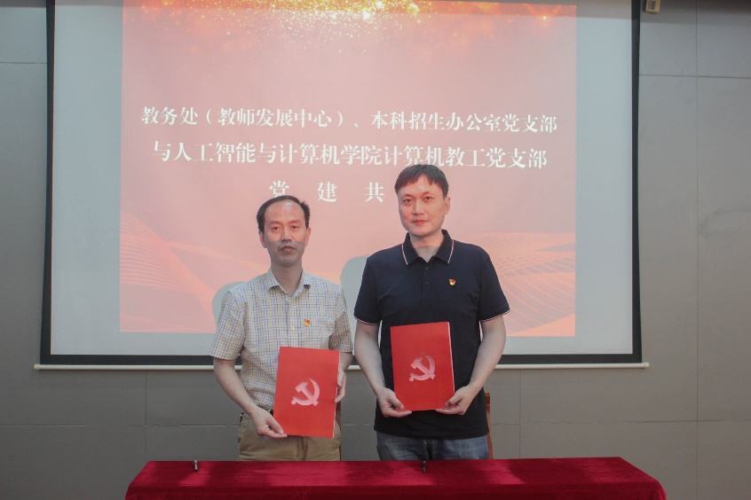 2023年7月5日下午,龙8-long8(头号玩家)国际唯一官方网站计算机教工党支部与教务处(教师发展中心)、本科招生办公室党支部在龙8-long8(头号玩家)国际唯一官方网站B310会议室开展支部共建。龙8-long8(头号玩家)国际唯一官方网站党委书记张华,副院长(主持工作)方伟,教务处副处长吴宝锁,龙8-long8(头号玩家)国际唯一官方网站副院长、计算机教工党支部书记宋威,教务处(教师发展中心)、本科招生办公室党支部副书记聂晨曦,以及两个党支部的全体党员参加了此次活动。