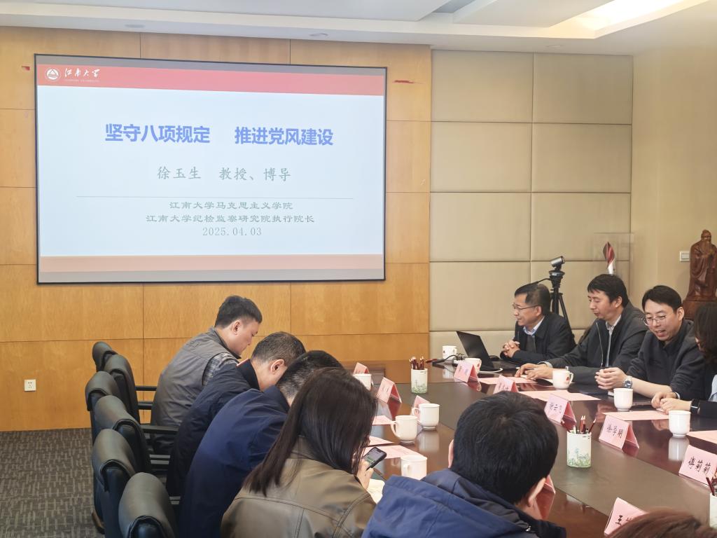 徐玉生教授以《坚守八项规定推进党风建设》为题,带领大家梳理了近年来全国违反中央八项规定精神的相关问题,介绍了关于中央八项规定精神具体问题的80条清单,阐明了深入贯彻中央八项规定精神的必要性和紧迫性,提出反腐败斗争形势依然严峻复杂,正风肃纪反腐永远在路上,提醒大家要通过深入学习,以史为鉴,严守党的纪律这条生命线不松弛。