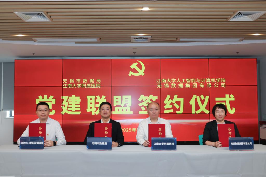 此次党建联盟签约,是围绕打造无锡市“人工智能+医疗”新高地开展的跨领域跨行业共建项目,通过理论共学教育融合、活动共办标准融合、阵地共享资源融合、业务共商成果融合,实现了一次具有重要意义的党建工作模式创新探索。四方将以“共建、共享、共赢”为原则,聚焦提升医疗效率、赋能精准医疗、强化管理决策三大核心目标,共同探索建设起智慧医院、数据治理、数据要素、信息标准、数据交易等方面的合作。学院也将进一步落实“人工智能+”有关要求,按照学校统一部署,深入融入无锡当地产业发展,以人工智能赋能高质量发展。