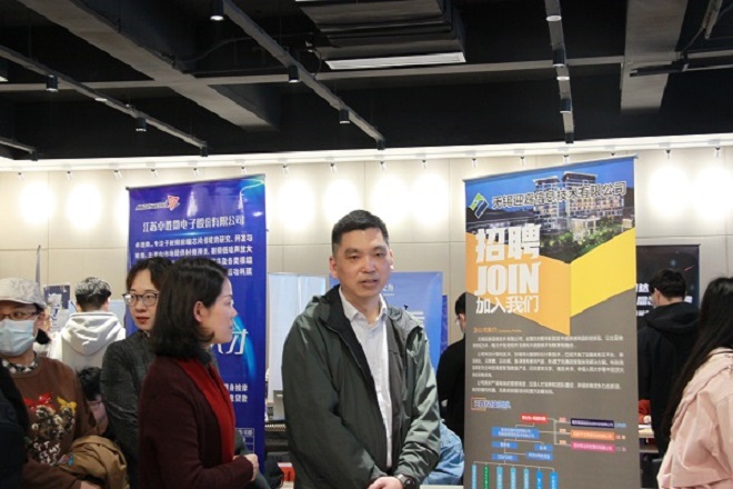 3月31日下午,龙8-long8(头号玩家)国际唯一官方网站2021年春季招聘会在北区大学生活动中心举办。无锡先进技术研究院、恒为科技(上海)股份有限公司、蓝深远望科技股份有限公司等66家优质企业参会,提供了近350个岗位,吸引200余名智能学子前来应聘,共收到学生简历500多份。学院党委书记张华、党委副书记陈祎、毕业生辅导员杜磊、王牧在招聘会现场与公司招聘人员以及应聘同学沟通交流。