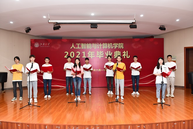 典礼开始前,全体师生观看了毕业生拍摄的视频,视频记录了毕业生们美好的大学时光。随后,毕业班代表带来《再看一眼我们相遇的康桥》朗诵,表达了毕业生们对母校真挚的情谊。
