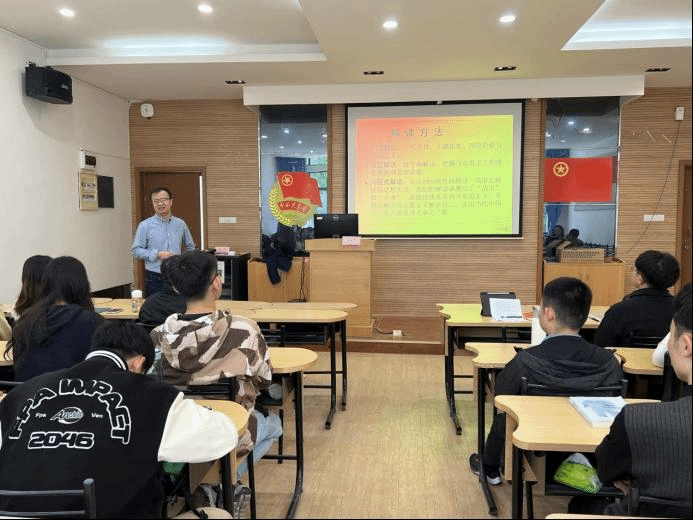 最后,马克思主义学院教授陈永杰老师以“精读《共产党宣言》,重温党的宗旨”为题开展党课第二讲,陈老师从《共产党宣言》、马克思的影响以及马克思主义的当代境况三个方面展开,系统地阐释了科学社会主义理论。他希望同学们要端正入党动机,把全心全意为人民服务和为共产主义奋斗的信念作为自己的目标,学员们受益匪浅,党课在热烈的掌声中结束。