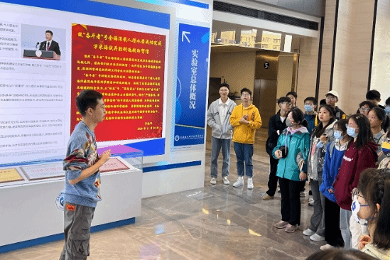随后,讲解员在太湖实验室展厅对中国船舶科学研究中心的基本情况、科研成果、发展规划等方面做了简要介绍。参观过程中,同学们驻足观看,认真聆听,从一个个展板、一块块奖牌、一件件科研实物中深切感受到了科研中心攻坚克难、奋发进取的精神。