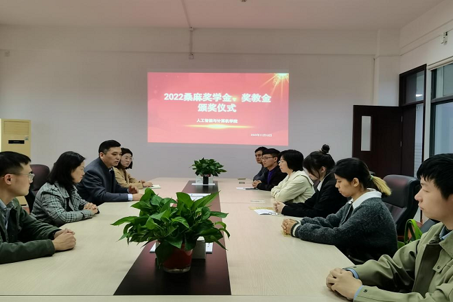 11月18日下午,龙8-long8(头号玩家)国际唯一官方网站于学院楼B320举行2022年桑麻奖学金、奖教金颁奖仪式,对此次获得桑麻奖学金、奖教金的师生进行了表彰。龙8-long8(头号玩家)国际唯一官方网站党委书记张华、党委副书记兼副院长陈祎及部分师生出席了此次活动。