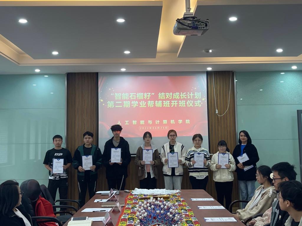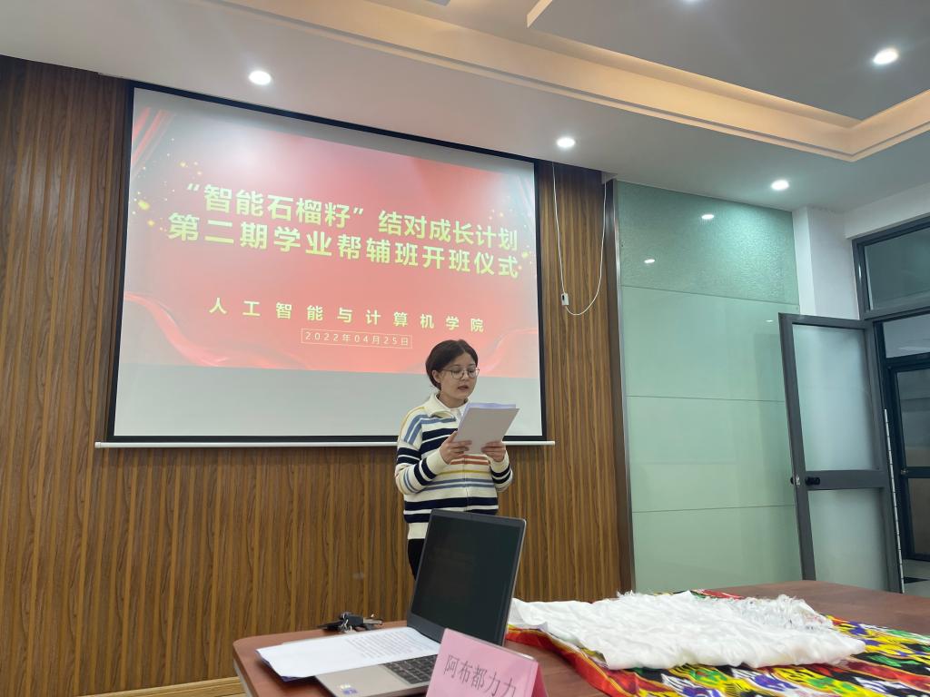 4月25日下午,龙8-long8(头号玩家)国际唯一官方网站2023年“智能石榴籽”结对成长学业帮辅计划第二期开班仪式在学院240会议室举行。江南大学学生工作处派驻老师古扎努尔、胡文波,学院分团委书记沈丹,辅导员米宁、麦日帕提,2022学年国家奖学金、国家励志奖学金获得者,帮辅班学员参加本次活动。