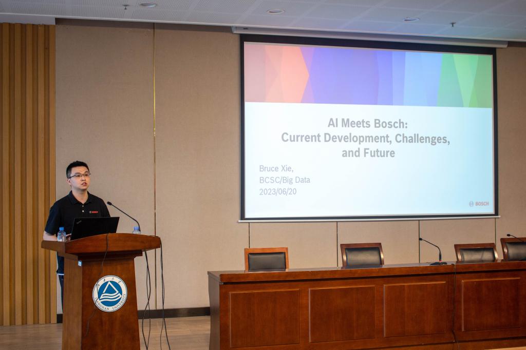 企业报告和学生分享环节,博世软件创新中心大数据团队负责人Bruce Xie介绍了博世软件在人工智能相关领域的项目案例,并从专业角度解答了如何提高就业竞争力等问题。服务外包大赛获奖学生于家艺从如何选题、团队组建以及如何准备PPT等方面分享了他参加学科竞赛的经验。CCF江南大学学生分会张书铭介绍了协会的发展历程,宣扬了CCF学术分享精神。CCF走进高校的活动增进了相关专业同学和CCF的联系,受到学院师生的积极关注和一致好评。两位论坛征文获奖者张昌伟、程春阳分享了他们的研究成果,并围绕研究内容与在场学生交流沟通,勉励全体研究生潜心学术、追求创新。