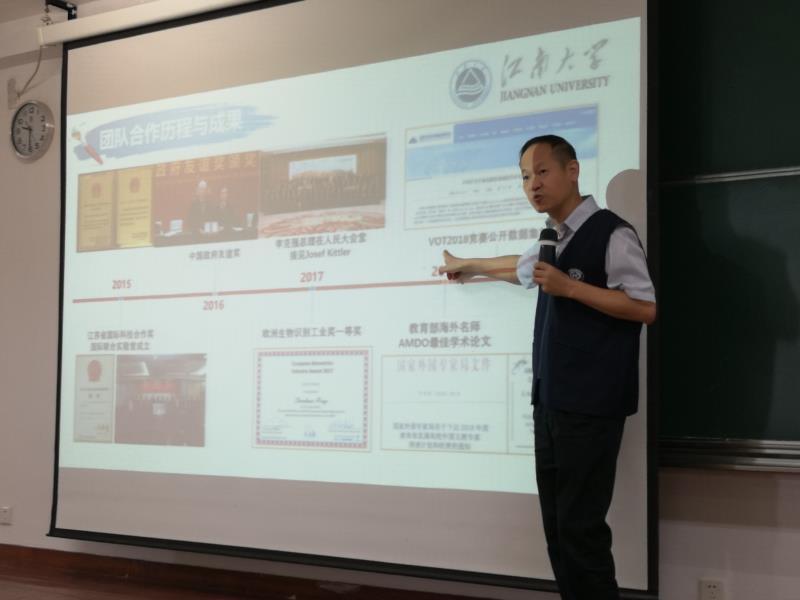 吴小俊教授首先从人杰地灵的无锡讲起,结合国家战略和地域优势向同学们展示了我院计算机专业的办学优势,随后从江南大学计算机学科简介、国际合作促进人才培养以及给新生的建议三个方面展开。无锡是物联网之都,是亚洲唯一的IEEE智慧城市示范城市,在无锡市政府所做重点发展“四梁八柱”产业集群中,计算机占有非常重要的地位。这为计算机专业的发展和人才培养提供了非常好的外部环境,我院的计算机专业在人工智能和物联网方面的研究尤为突出,在国内外属于领先水平,学院培养的硕博生在国际顶级赛事中屡创佳绩,发表多篇高引用率高质量的权威期刊论文。同时,学院非常注重国际合作,提供国际交换生、游学夏令营、国际会议等多个项目促进学生的国际交流,开阔视野。最后,吴教授从专业学习、图书馆资源利用、大学交往与身心健康等方面语重心长的给新生们提了建议。