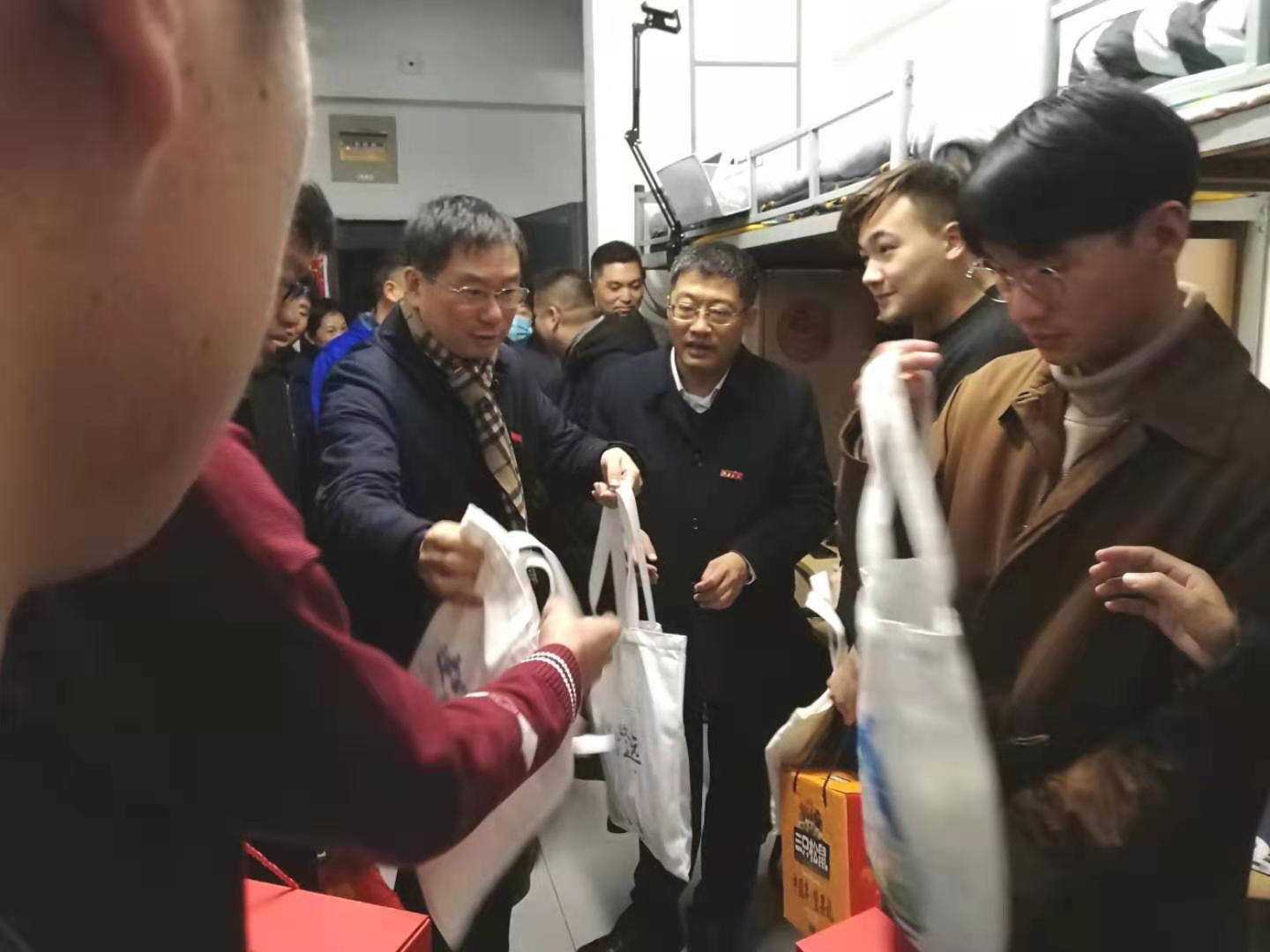 绿回春晖渐,万象始更新。值此新春佳节来临之际,除夕上午校长陈卫院士、党委副书记戴月波、副校长田备一行走访慰问龙8-long8(头号玩家)国际唯一官方网站留校过春节的学生,向他们并通过他们向全体学生致以新春的祝福。宣传部部长倪松涛、校办主任张梁、学生工作部部长张菁燕、学院党委书记张华、院长刘渊、党委副书记兼副院长陈祎等一并走访慰问。