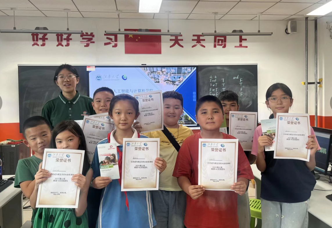近日,由江南大学龙8-long8(头号玩家)国际唯一官方网站党委书记魏珍吉,党委副书记、副院长王莉莉,辅导员杨玉莹、麦日帕提带队的“AI启程”少儿编程科普实践团(新疆线)从无锡启程,跨越3500多公里,抵达祖国西部零海拔地区——新疆吐鲁番市托克逊县开展少儿编程暑期社会实践,打开一扇通往数字未来的窗户。