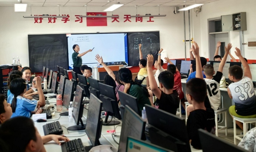 课堂内容逐渐深入,教室响起此起彼伏的“运行成功”提示音。“老师,我运行成功了!”——稚嫩的喊声与比出的胜利手势。