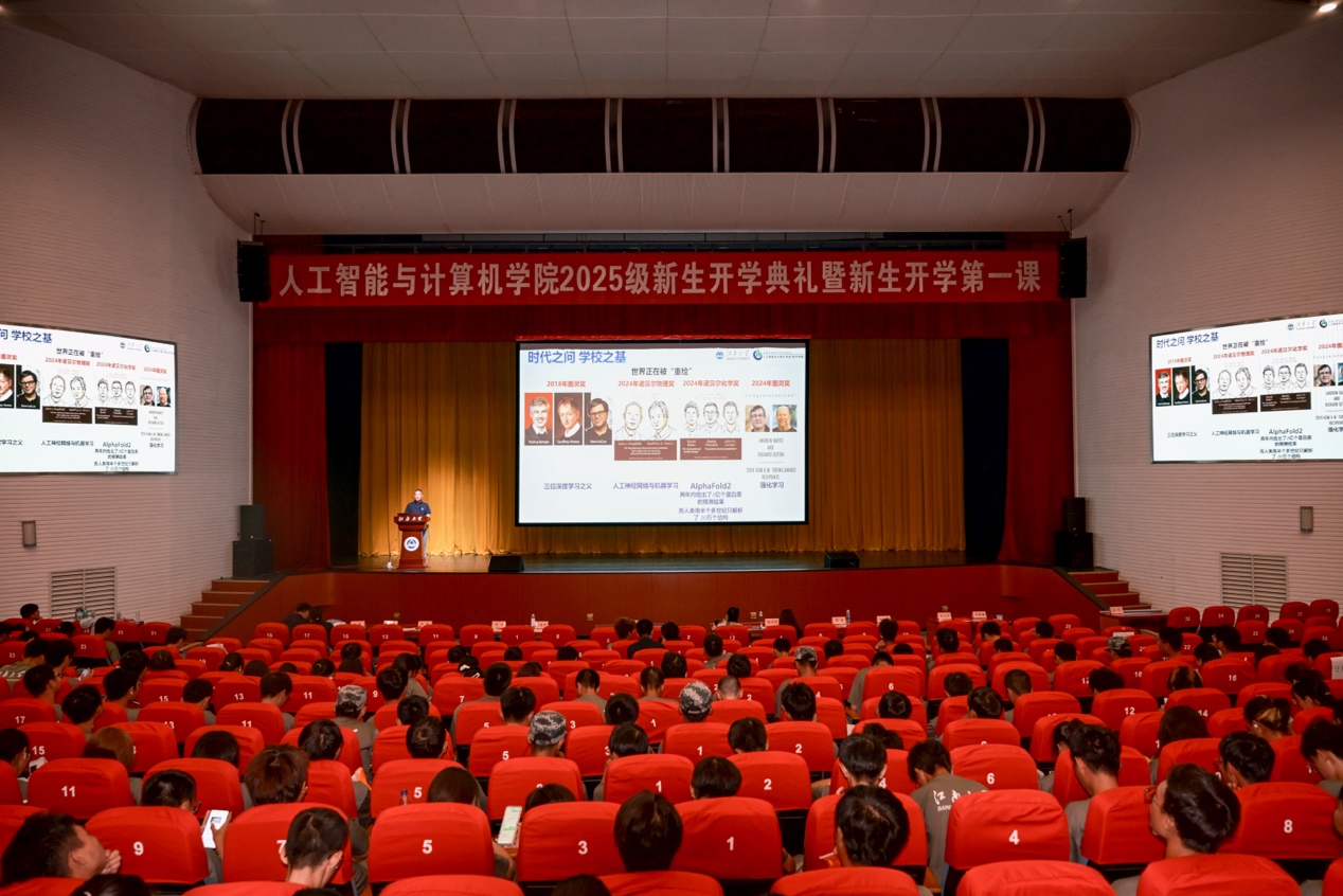 开学典礼结束后,方伟为本科新生讲授“开学第一课”,引导学生思考时代命题、认识国家需求、规划成才路径,激励大家将个人理想融入国家发展,为人工智能领域贡献青春力量。