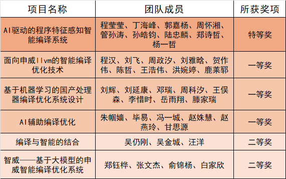 在备赛过程中,各团队指导教师成为了团队攻坚克难的坚强后盾。他们从赛题解析的全方位把关,到技术路线的精准规划,再到方案撰写的字斟句酌,全程深度参与、悉心指导。与此同时,6支参赛团队紧紧围绕人工智能在编译器优化领域的前沿应用,全身心投入到研究工作中,充分发挥创新精神,以实验室为“战场”,日夜奋战。对项目方案进行反复推敲和优化,通过查阅海量资料、开展多次实验,不断探索新的解决方案,最终脱颖而出。