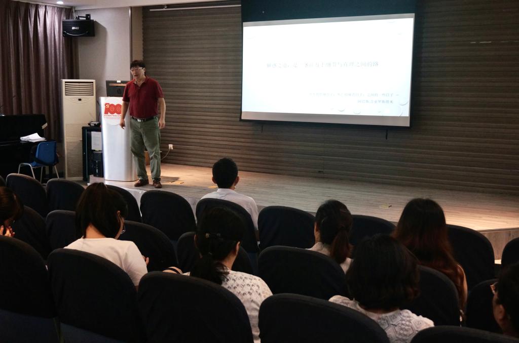 7月7日下午,江南大学龙8-long8(头号玩家)国际唯一官方网站邀请国家杰出青年基金获得者、上海交通大学傅育熙教授莅临我院,为我院教师开展题为“解惑之道,从细节到真理”的精彩讲座。