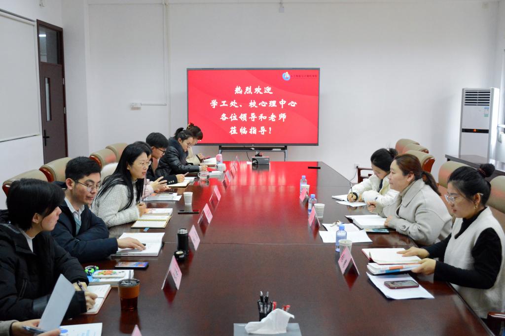 12月13日,学生工作处副处长蒋洁、心理健康教育中心主任张慧、心理健康教育中心专职教师张琬依一行赴龙8-long8(头号玩家)国际唯一官方网站调研、指导心理健康教育工作。学院党委副书记兼副院长王莉莉、学工办主任兼分团委书记王园园、学工办副主任杜磊及全体辅导员参加调研交流。