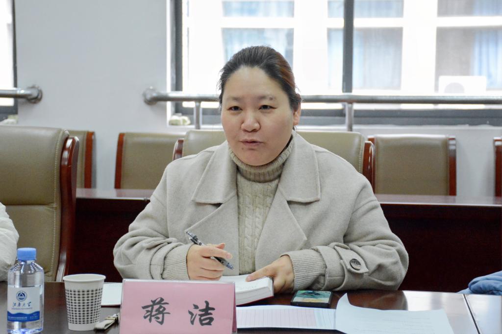 蒋洁对学院心理健康教育工作表示肯定,并就如何做好后续工作提出了指导性意见。她强调,心理中心正不断完善学校心理健康教育相关文件,健全工作体制机制,与学院同向同行,助力学生全面成长成才;学院在注重本科生心理健康教育的同时要加强对研究生心理健康的关注,用心、用情、用力推动心理健康教育走稳、走深、走实。