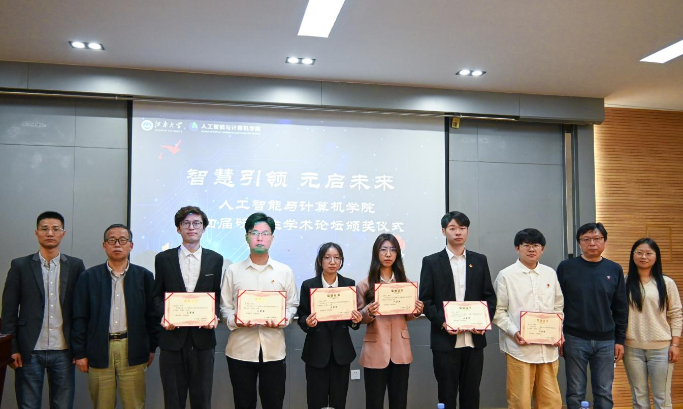 答辩环节,10名入围决赛的研究生依次就科研论文和实践项目进行答辩。师生们围绕大模型、优化算法等内容进行深入交流和研讨,最终评选出一、二、三等奖。王莉莉、王士同、宋晓宁、陈伟为获奖同学颁发证书。