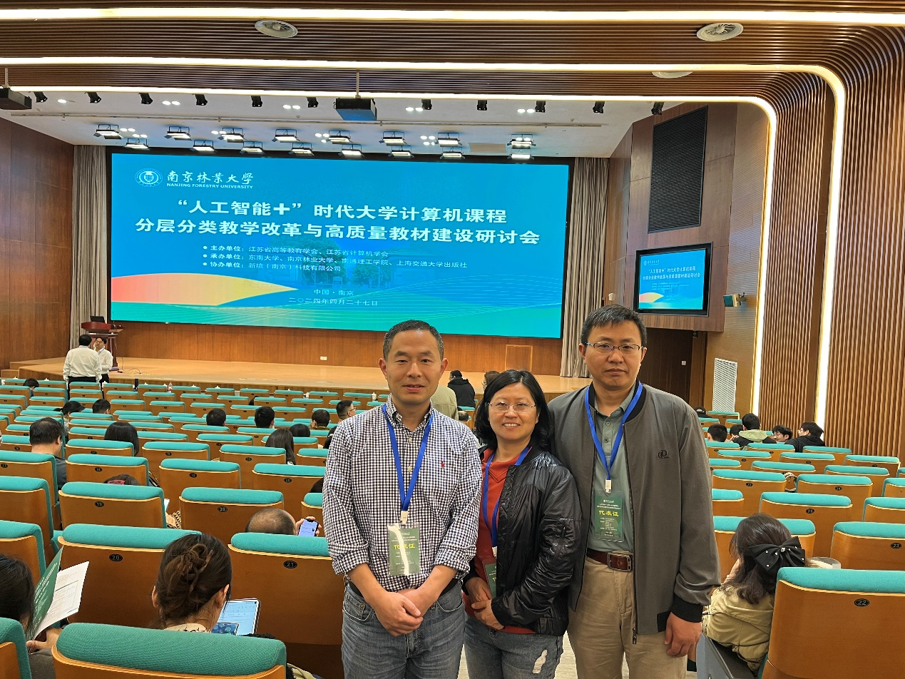 4月27日,“人工智能+”时代大学计算机课程分层分类教学改革与高质量教材建设研讨会在南京林业大学图书馆第一报告厅举行。本次会议由江苏省高等教育学会、江苏省计算机学会主办,东南大学、南京林业大学、南通理工学院、上海交通大学出版社承办。江南大学龙8-long8(头号玩家)国际唯一官方网站院长方伟,计算机系陈璟,计算机系桑庆兵等三位老师出席了会议。