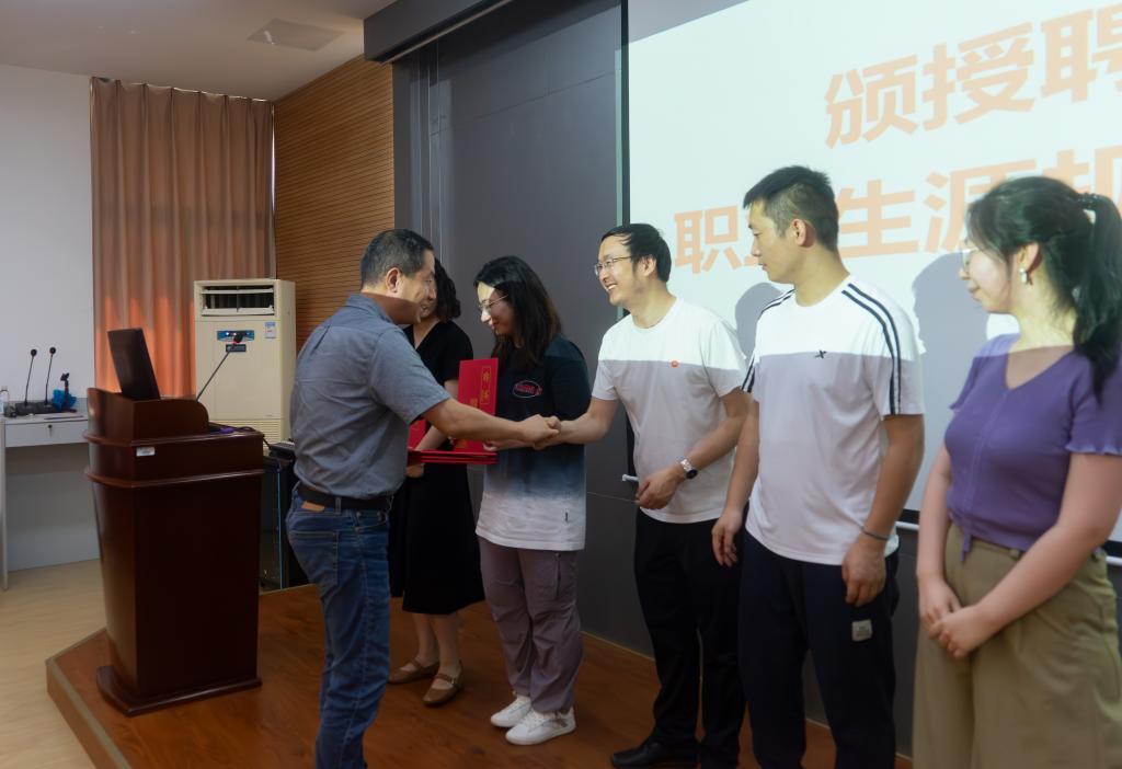 方伟向小米集团的6名行业精英颁发“大学生职业生涯规划导师”聘书,希望进一步融通校企合作机制,构建产教融合典范,深化人才培养机制。