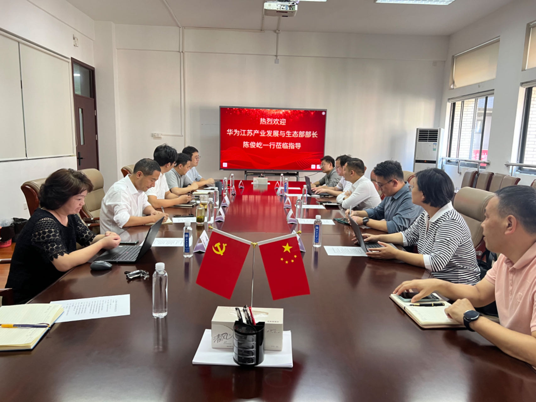 9月13日下午,华为江苏产业发展与生态部部长陈俊屹、华为无锡人工智能协同创新基地运营总经理张茂、华为江苏政企教育行业解决方案总监彭迪、华为江苏政企大客户与地市服务部院校总监孙婷婷、华为江苏政企无锡业务部教育行业代表卢兴典一行来江南大学龙8-long8(头号玩家)国际唯一官方网站调研座谈。龙8-long8(头号玩家)国际唯一官方网站党委书记陈琳、院长方伟、副院长钱鹏江、教授蒋敏、校友孙博参加座谈会。
