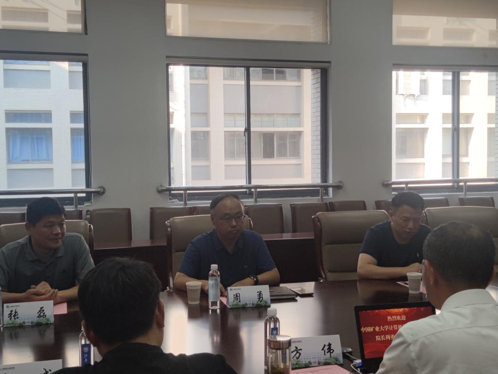 9月12日下午,中国矿业大学计算机科学与技术学院院长周勇、人工智能系主任许新征、软件工程系主任张磊一行到我院进行访问交流,学院院长方伟、副院长宋威、教授孙晓燕、人工智能系主任于宏斌等参加座谈交流。