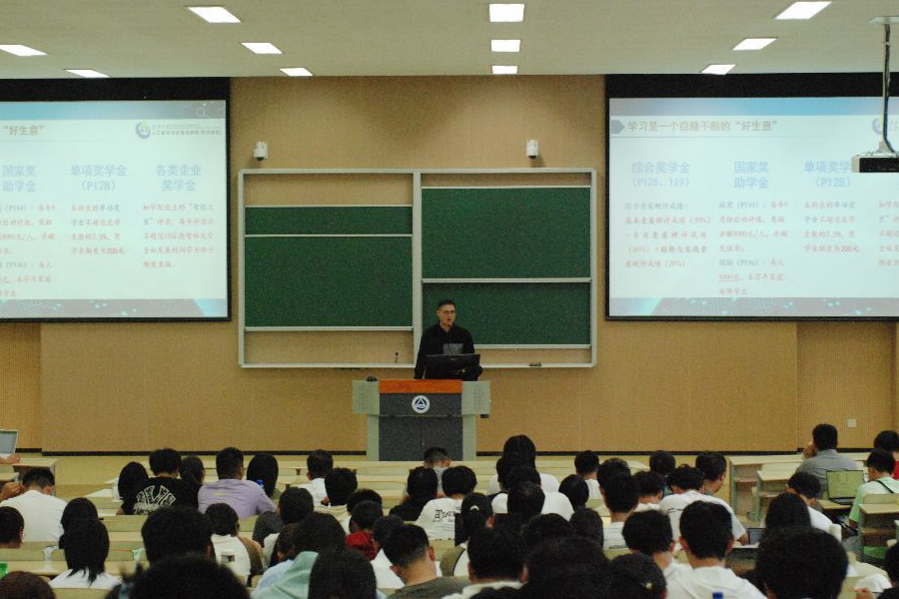 为进一步加强新生日常教育管理,引导新生遵守学校规章制度,明细未来学习方向,10月16日下午,龙8-long8(头号玩家)国际唯一官方网站2024级新生转型教育系列活动之教务篇与奖惩篇,在二教2A127顺利举行。学院教务秘书陈捷、辅导员米宁及2024级全体本科新生参加活动,本次讲座由辅导员戴士焱主持。