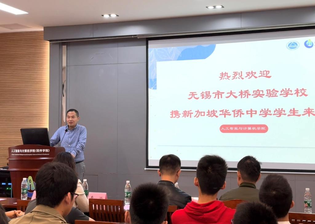 方伟向来访的无锡市大桥实验学校和新加坡华侨中学的师生们表达了热烈的欢迎,并对人工智能进入中小学,助力无锡中小学AI工程教育提出了设想。他希望以共建“名城名校”为抓手,进一步加强校地合作,为无锡培养更多的AI人才,也希望能有更多的优秀学子在未来选择江南大学进行深造。