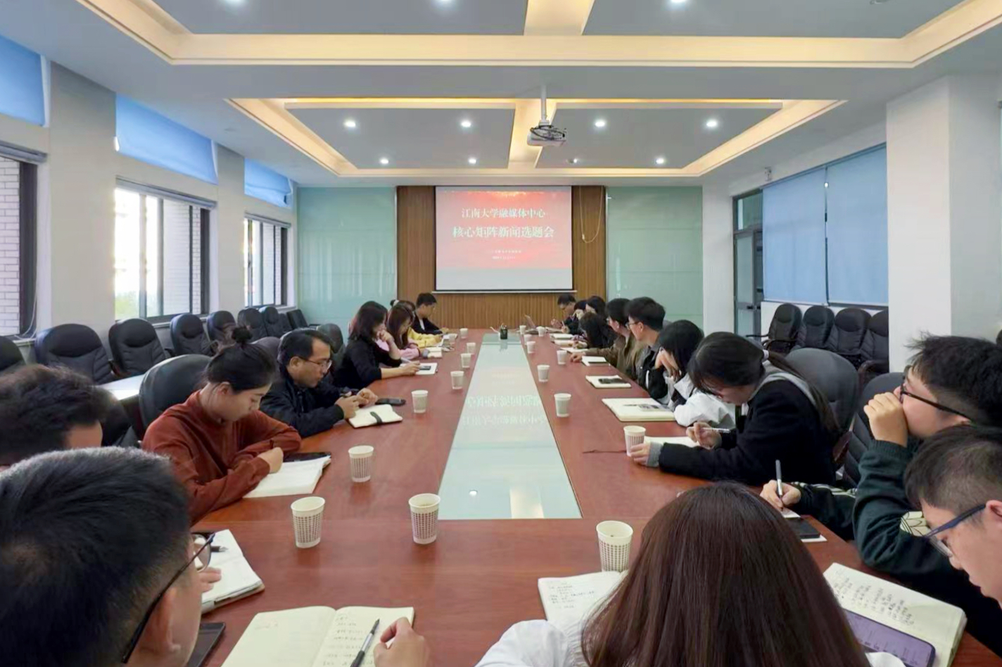 11月11日,江南大学融媒体中心主任兼党委宣传部副部长单筱婷一行赴龙8-long8(头号玩家)国际唯一官方网站召开融媒体核心矩阵新闻选题会。龙8-long8(头号玩家)国际唯一官方网站党委副书记兼副院长王莉莉、宣传辅导员米宁以及各职能部门、学院宣传员参加会议。