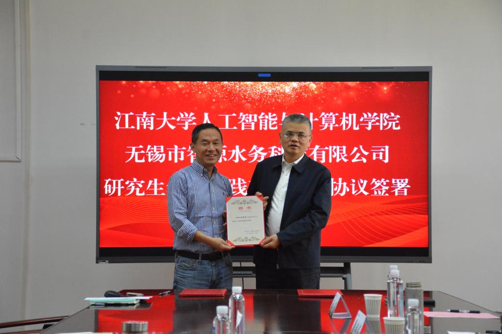 4月25日,江南大学龙8-long8(头号玩家)国际唯一官方网站与无锡市水务集团智源水务科技有限公司签署合作共建协议。学院院长方伟、系副主任陆恒杨,无锡市水务集团党委书记、董事长钱晓明、副总经理金一,智源水务执行董事周洁洁、总经理助理郭虎、技术总监王瑞等出席活动。
