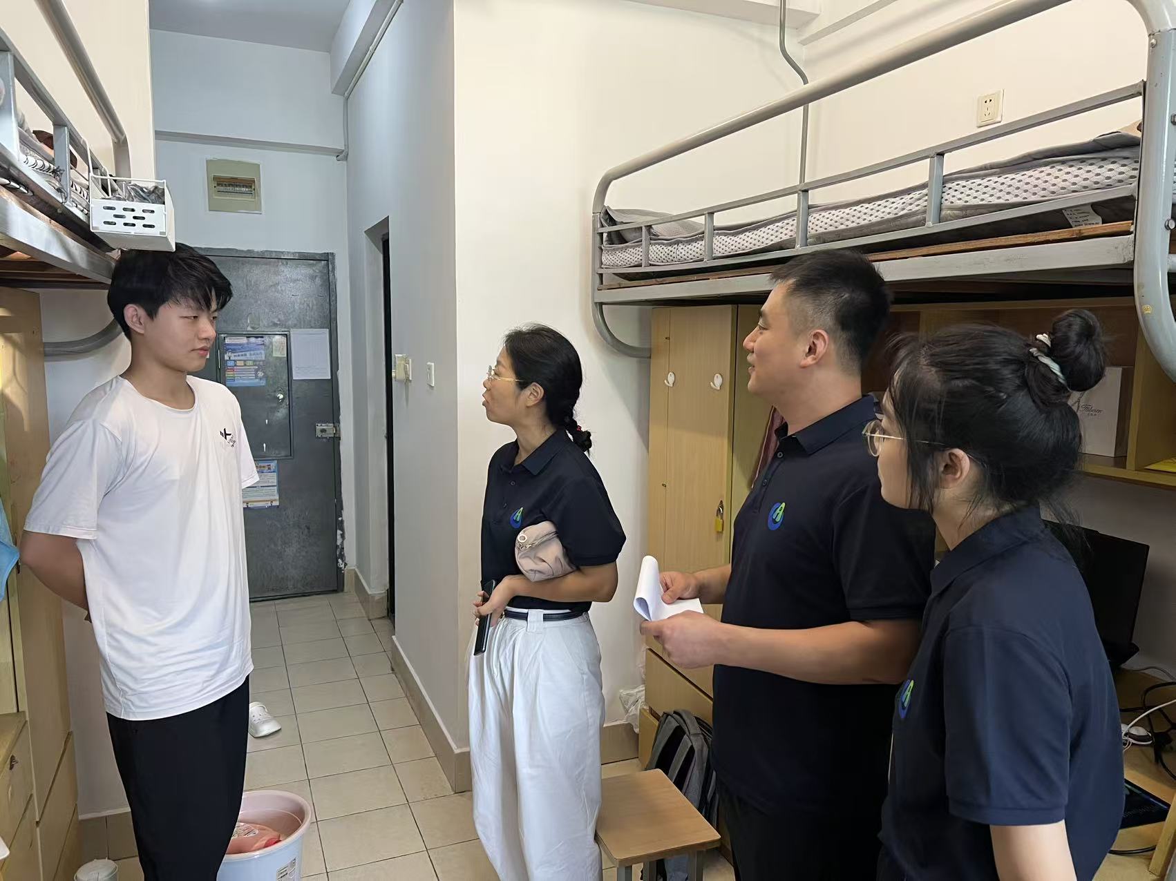温情相伴,凝聚合力。8月29日下午,学院领导、辅导员一同走进新生宿舍,看望慰问2025级本科新生。领导们与同学们亲切交谈,详细了解住宿环境、饮食起居等情况,勉励大家尽快适应大学生活,与室友互相理解、彼此支持,共同进步。同日下午,学院召开2025级本科新生家长见面会。会议由新生辅导员戴士焱主持。会上,院长方伟从城市、学校、学院及学生四个维度全面介绍学校与学院概况,党委副书记、副院长王莉莉就新生心理发展作专题辅导,党委书记魏珍吉结合学生工作实际,建议家校通过协同协作与共育共管,共同助力学院发展,促进学生全面成长。互动环节中,辅导员与家长进行了深入沟通,有效搭建了家校协同育人的平台,营造出合力共育的良好氛围。