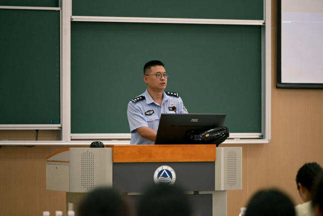 会上还开展了新生反诈宣传安全教育。康伟锋强调要注意人身、财产和政治安全,增强防骗意识。随后,王焱伟结合刷单返利、购物骗局等典型案例,剖析常见诈骗手法,提醒同学们在网络生活中保持警惕,提高防范意识,谨防电信诈骗。