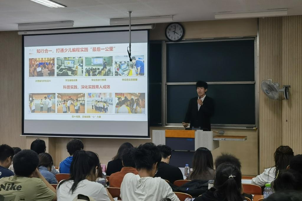 学院十支暑期社会实践重点团队围绕少儿编程课程普及、科技报国、AI赋能民族文化传承、智能反诈等主题分享了他们的青春实践故事,现场同学们参与投票。最终,“AI启程”少儿编程科普实践团荣获一等奖;“鼋行赵都,智能反诈”反诈宣防公益实践团、“壶”说西望实践团荣获二等奖;“普”公英推普实践团、兴安“鼋”梦实践团、边远地区少数民族文化调研团荣获三等奖,其余团队获得优秀奖。